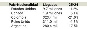 Disminución de -1.5% respecto a las llegadas de 2024.