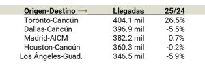 Rutas con más llegadas a México:
