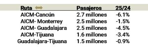 Disminución de -3.1% comparado con el mismo periodo del año anterior; es decir, 2 millones de pasajeros menos.