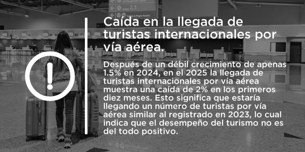 El 2025 presentó resultados mixtos en el desempeño turístico del país. Fue un año de contrastes con luces y sombras, cuyo análisis objetivo arroja importantes enseñanzas y oportunidades para consolidar el turismo como uno de los sectores más relevantes para el país e impulsar su papel para contribuir a un mayor crecimiento económico y un instrumento de desarrollo regional y creación de empleos.
