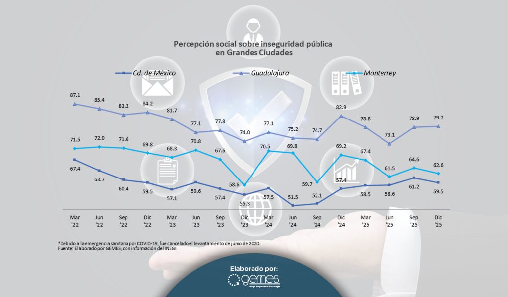 Percepción de inseguridad urbana: 6 de cada 10 mexicanos se sienten inseguros de vivir en su ciudad.