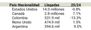Incremento de 1.4% comparado con 2024; es decir, 397 mil llegadas adicionales.