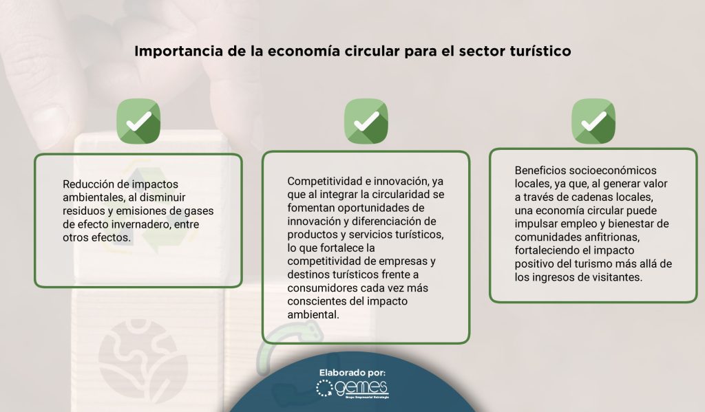 En el siguiente número de Reporte Gemes abordaremos en específico cuáles son las principales medidas que deben implementar las empresas turísticas en general y aquellas medidas específicas en algunos subsectores turísticos, así como las implicaciones estratégicas para destinos turísticos y las responsabilidades de las Secretarías de Turismo estatales y los gobiernos municipales en materia de economía circular y turismo.